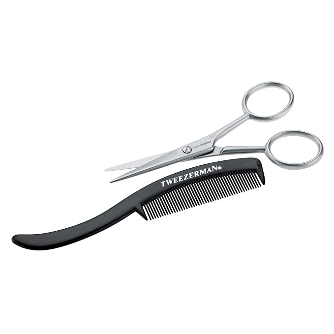 The Moustache Scissors & Comb feature sharp, precision blades for detailed cutting and maintenance of facial hair, while the comb is for brushing before and after trimming.