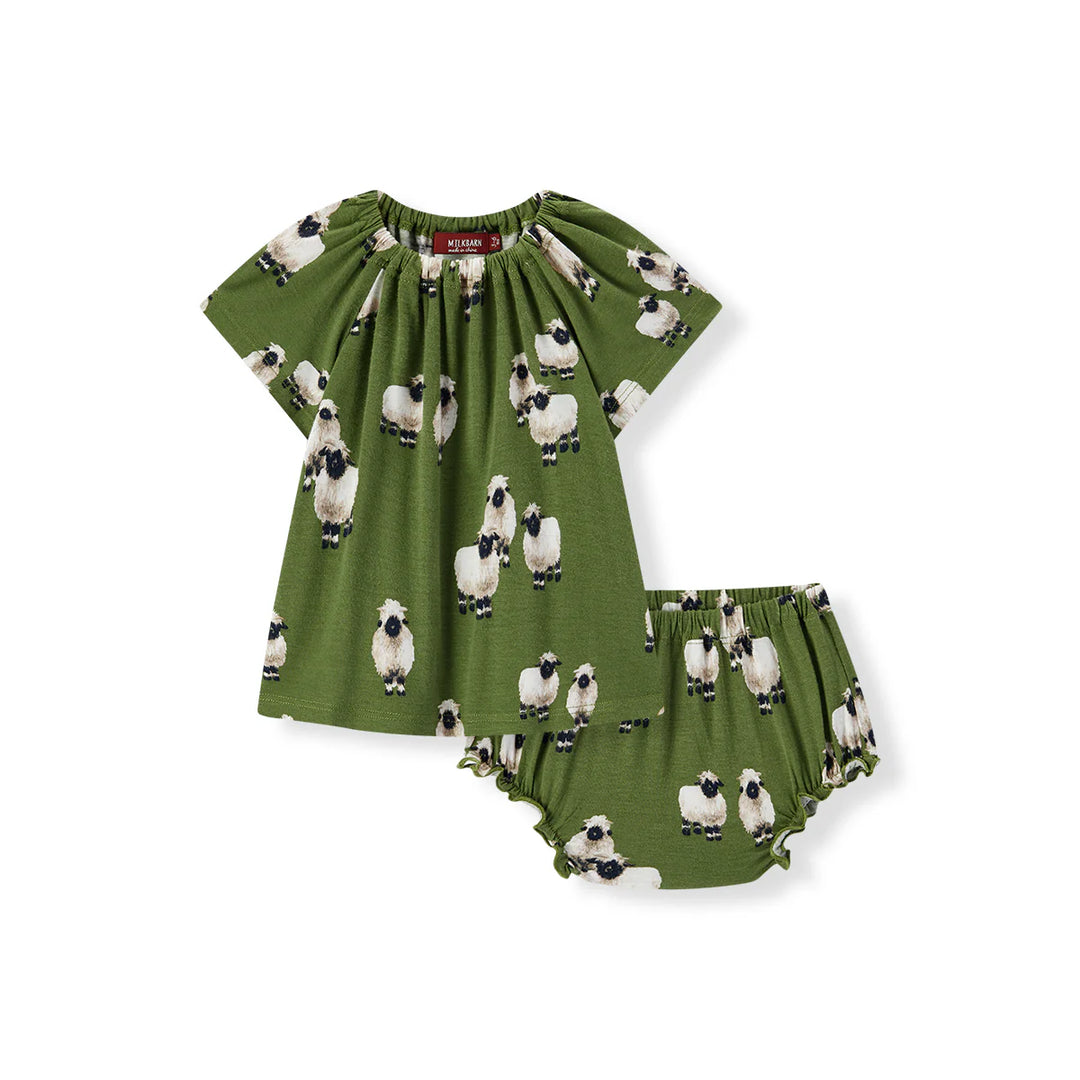 Milkbarn Valais Sheep Bamboo Dress & Bloomer Set
