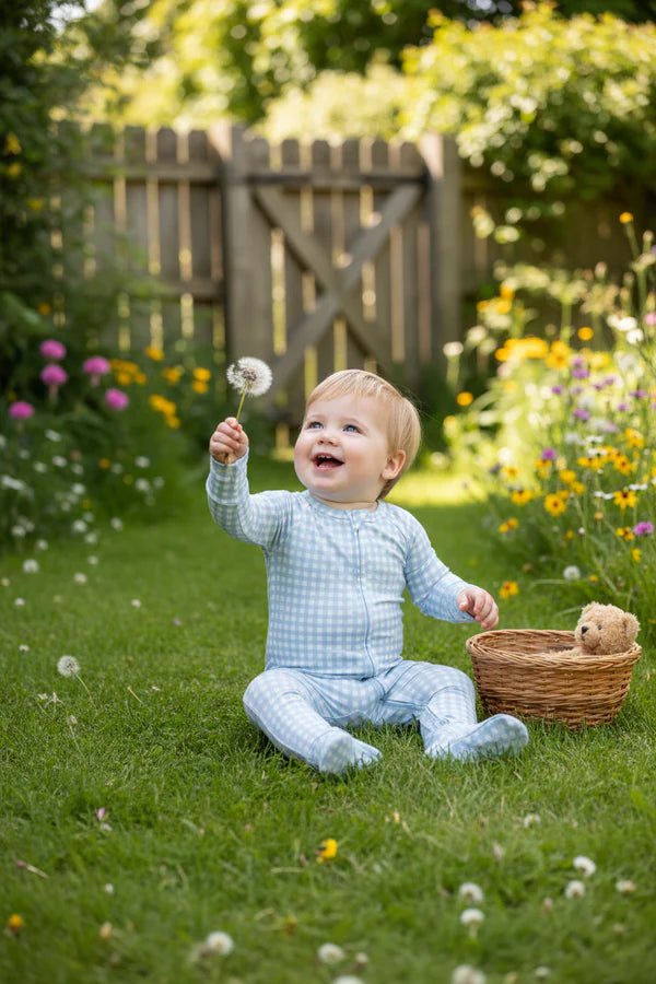 Goosies Kid's Gingham in Cottage Blue Zip Pajamas