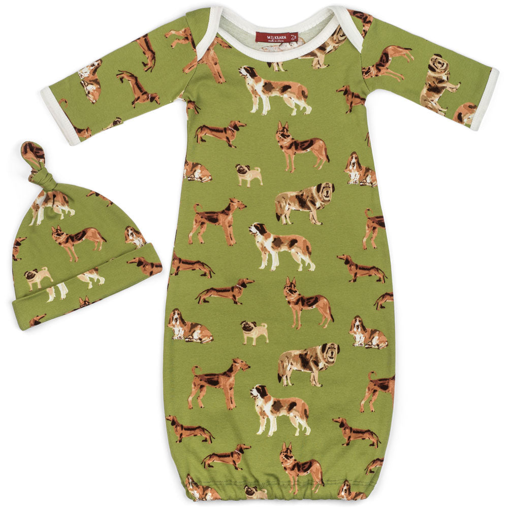 Milkbarn Newborn Hat & Gown Set Green Dogs