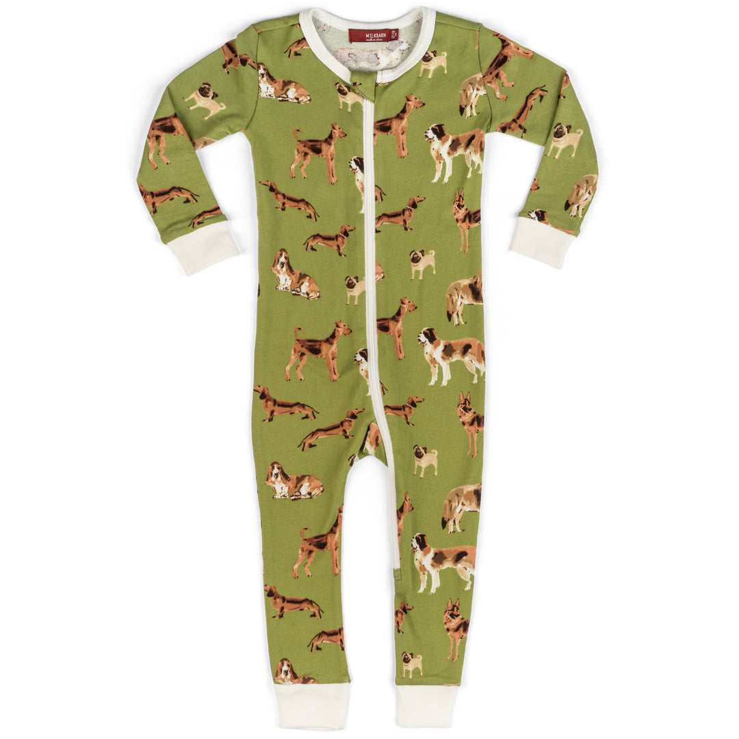 Milkbarn Zipper Pajama Green Dogs