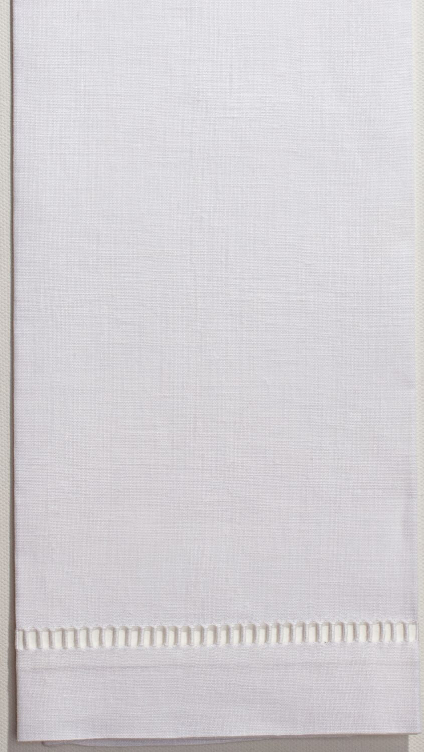 Traditional hand towel in 100% linen, finished by hand with a grande hemstitch.