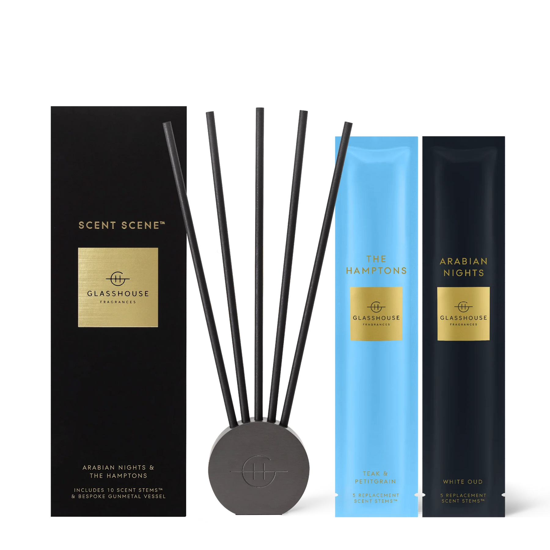 An innovative (and incredibly potent) liquidless diffuser. Available in a set with a stand and two curated scent stems or as a single pack of replacement scent stems.