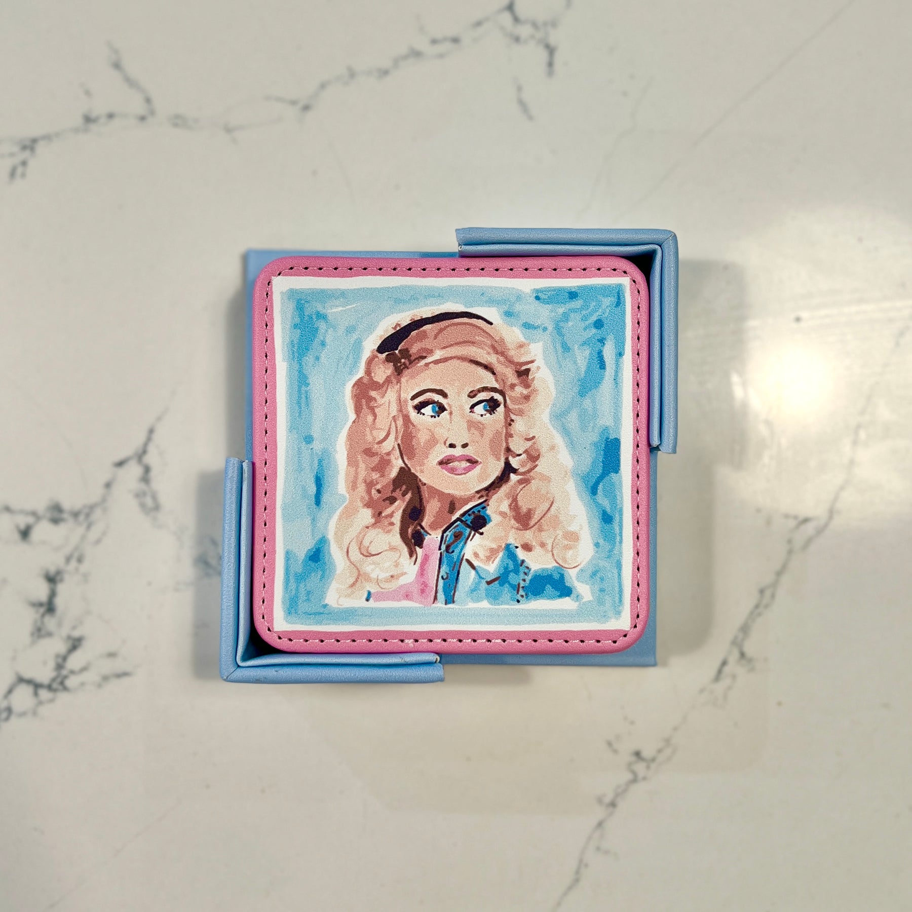 Pour yourself a cup of ambition and bring a touch of Dolly to your tabletop with this set of 4 reversible coasters. A thoughtful housewarming, hostess, or gift for someone special (or yourself!)