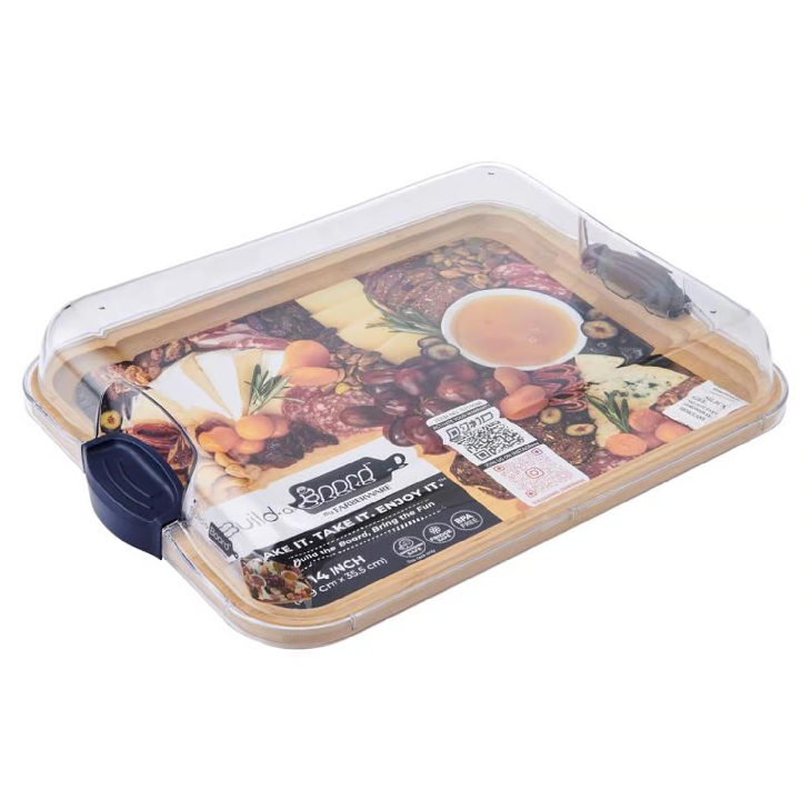 Make It. Take It. Enjoy It. Elevate your hosting game with the Farberware "Build a Board" bamboo cutting board, a versatile addition measuring 11x14 in. and has a raised edge on the board that brings innovation and elegance to your gatherings.