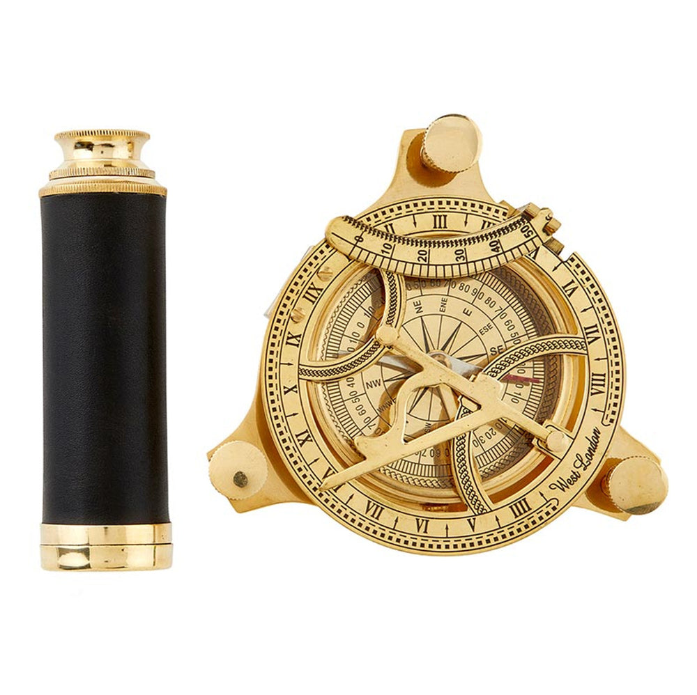 Cole Wheeler Explorer's Legacy: Vintage-Inspired Brass Compass & Telescope