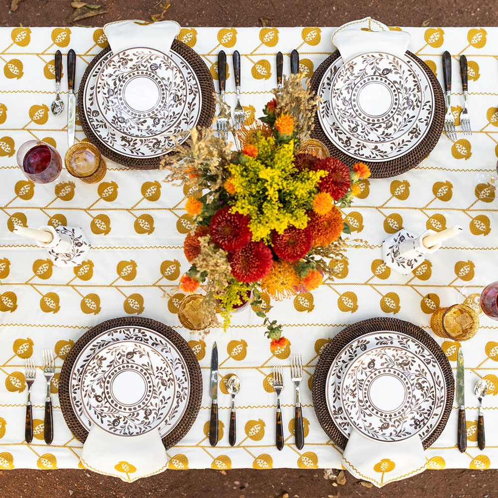 Pomegranate Crewel Ochre Tablecloth