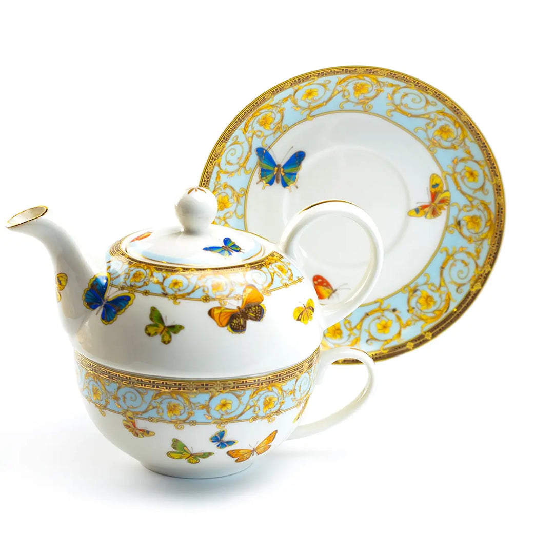 Butterflies with Blue Ornament Tea For One Set