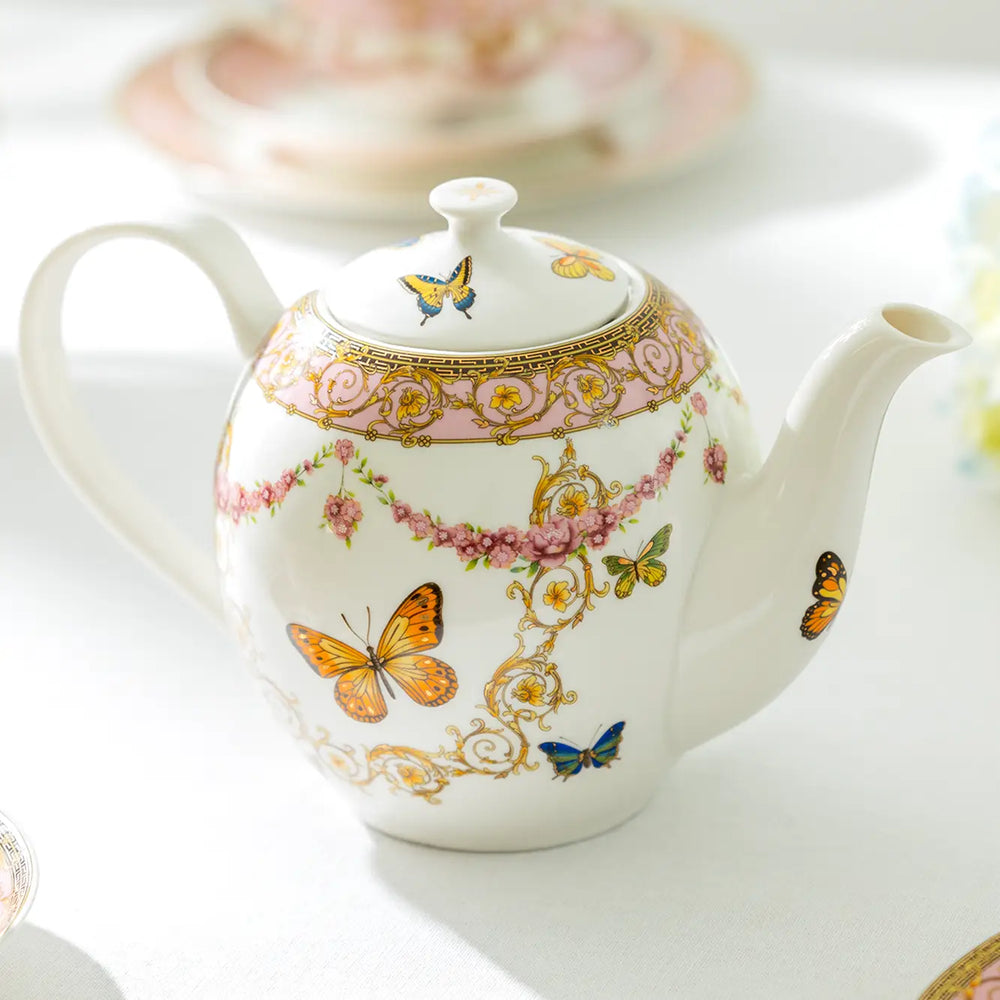Butterflies with Pink Ornament Teapot