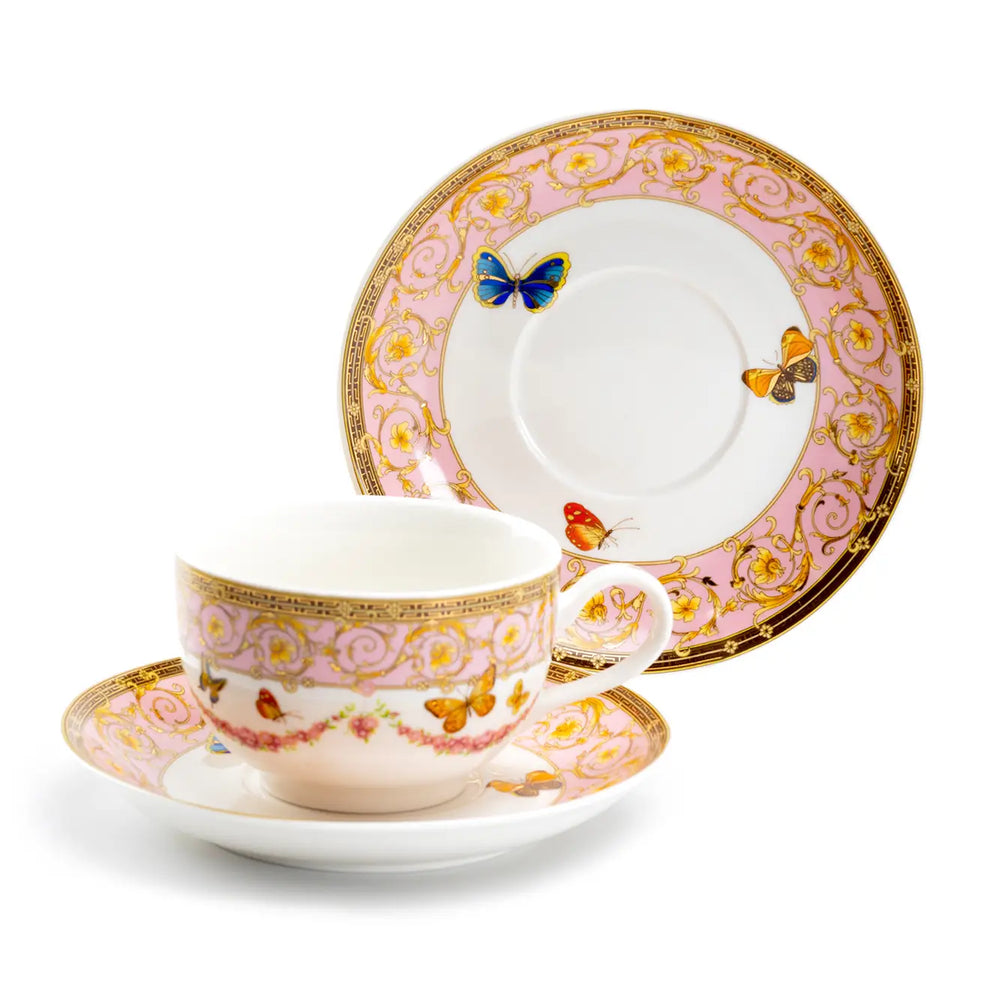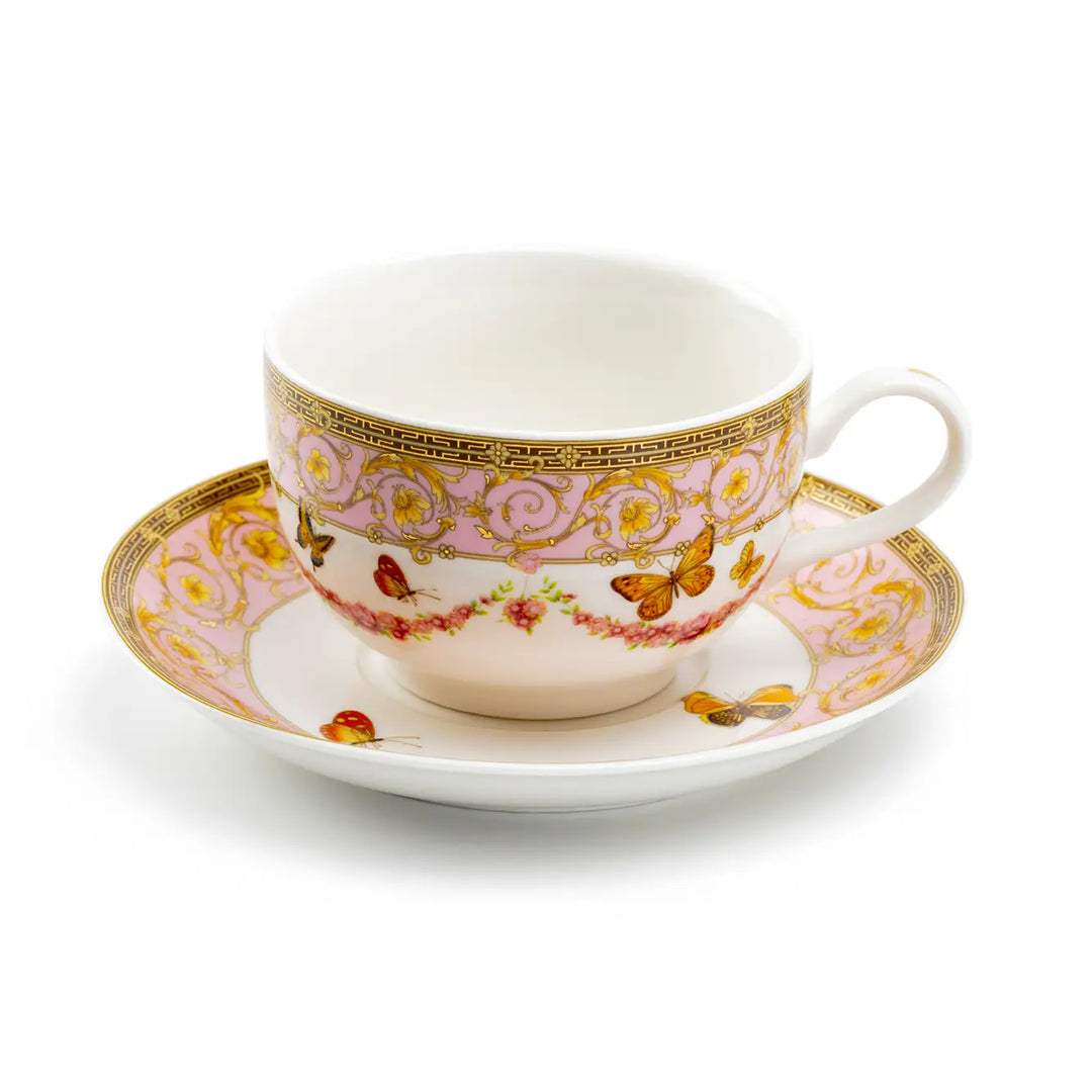Butterflies with Pink Ornament Tea Cup and Saucer