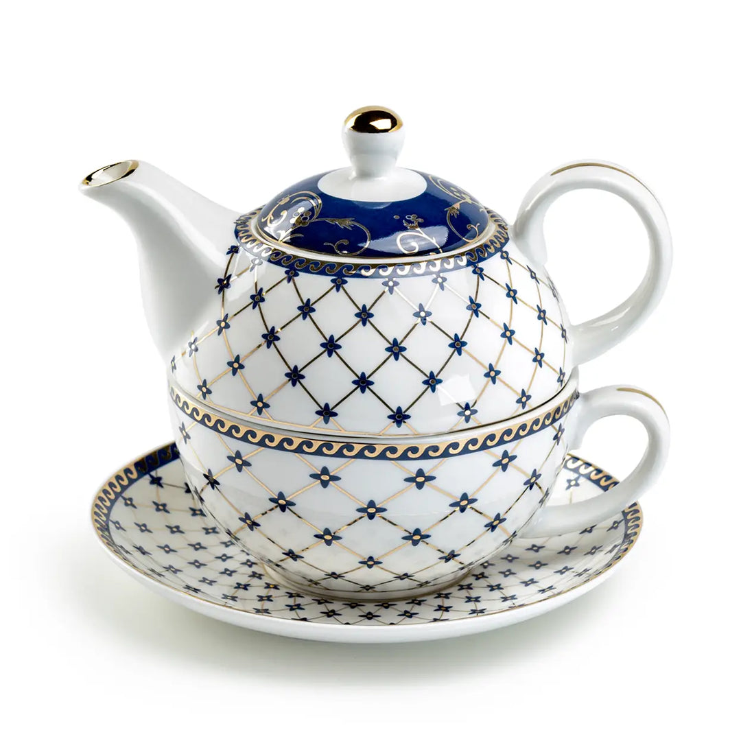 Trellis Blue Gold Fine Porcelain Tea For One Set