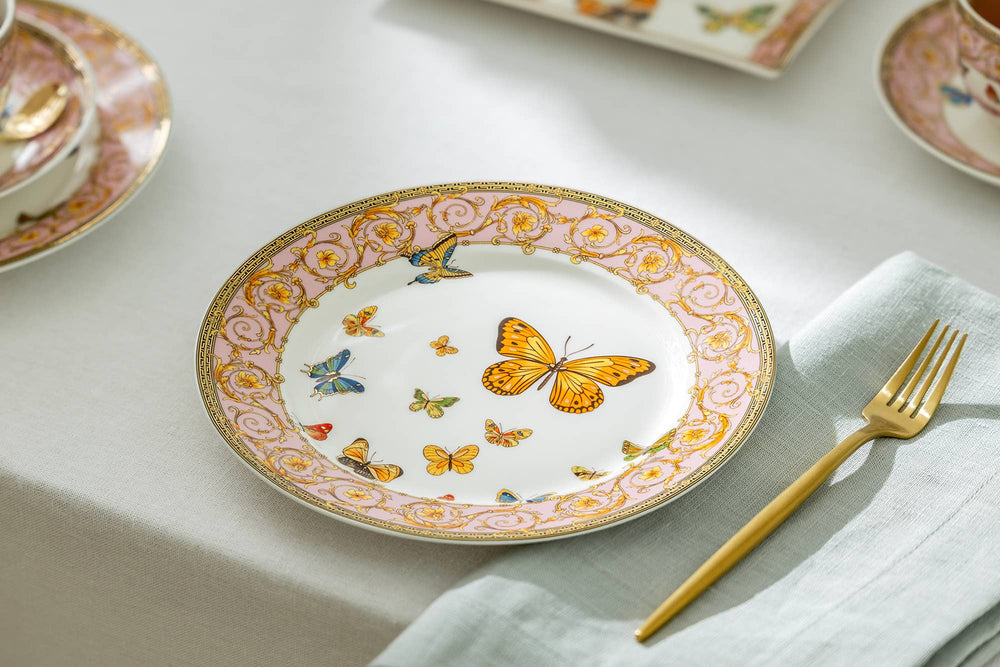Butterflies with Pink Ornament Dessert Plate