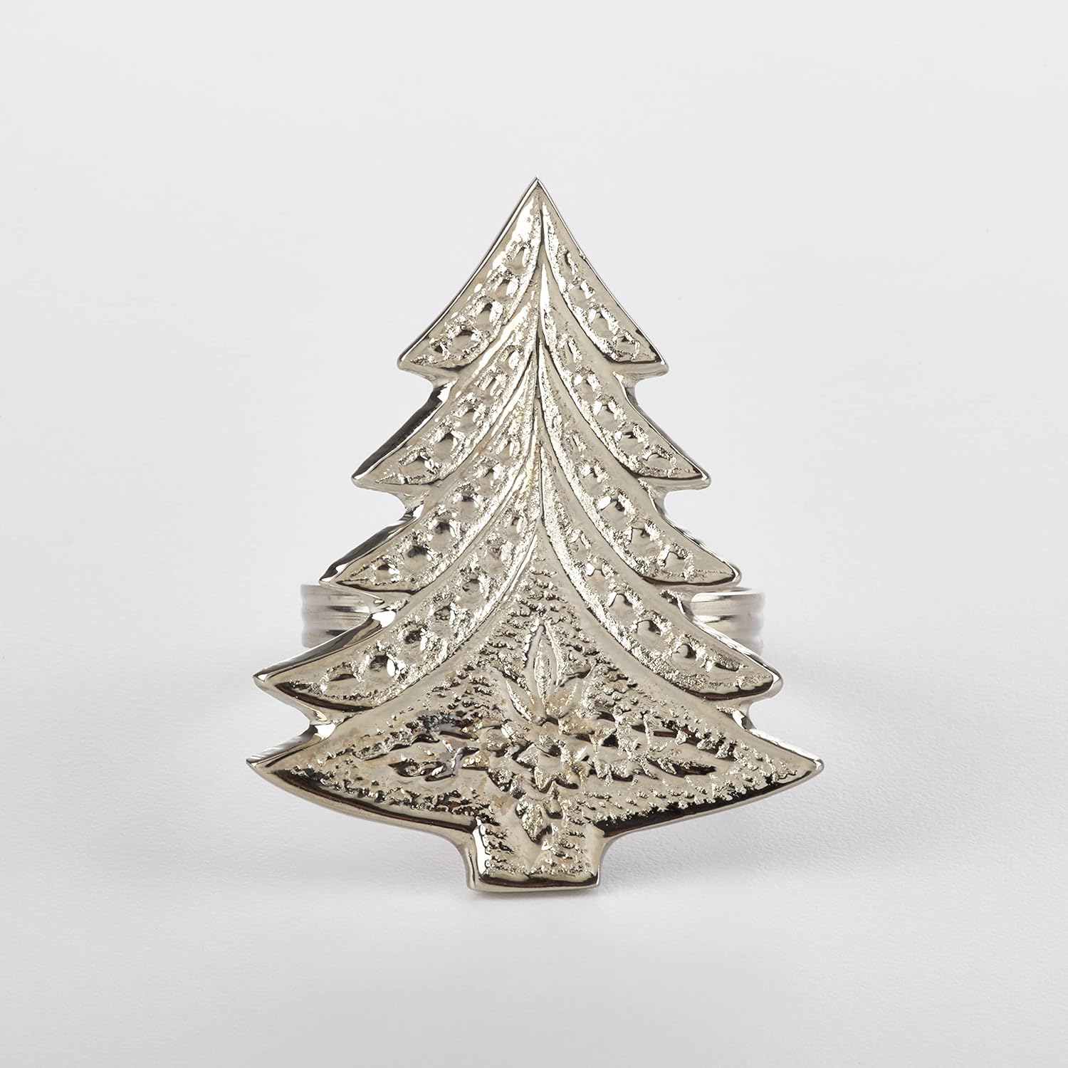 Bring a festive sparkle to your holiday table with these elegant Christmas Tree Napkin Rings by SARO. Crafted in a sleek silver finish, this napkin ring adds both weight and sophistication to your place settings, making them the perfect finishing touch for your Christmas décor.