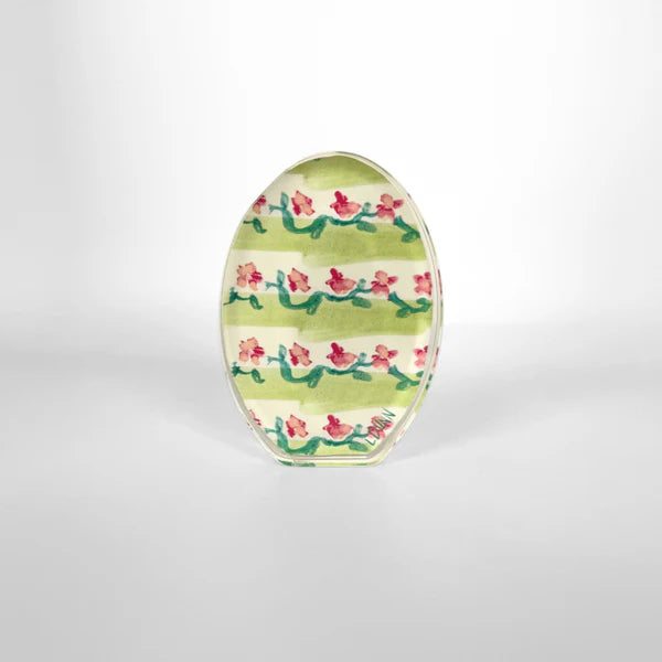 Featuring Lauren’s hand-painted design, our Spring in Green Acrylic Egg brings a pop of spring to any tray, shelf, or tabletop display.