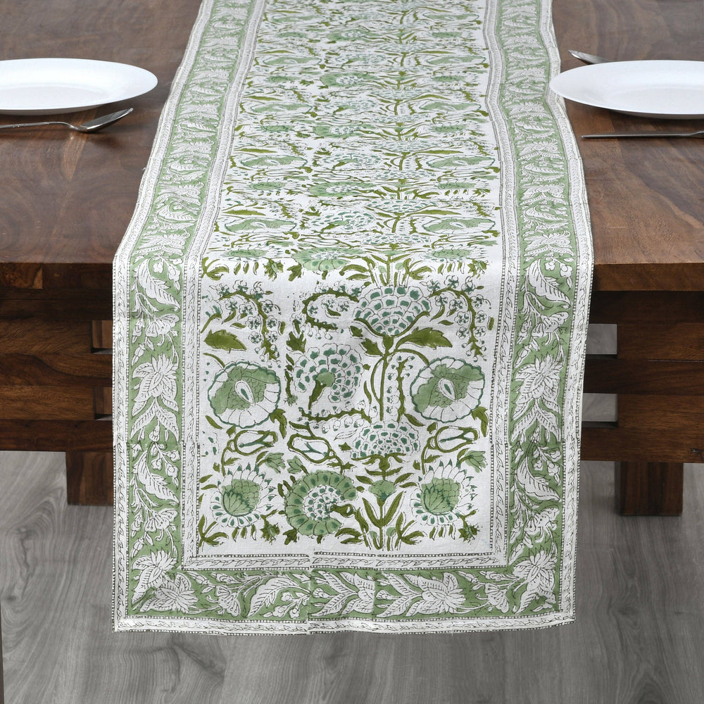 Cotton Print Club Printed Cotton Round Tablecloth Agate Green