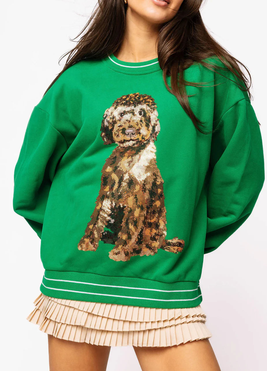 Queen of Sparkles Green Golden Doodle Sweatshirt