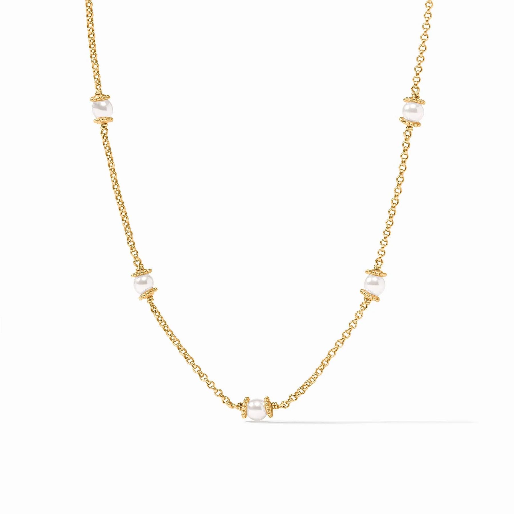 Perfectly polished gemstone spheres with finely beaded golden caps appear to float along this necklace's delicate Venetian box chain. Features an adjustable closure.