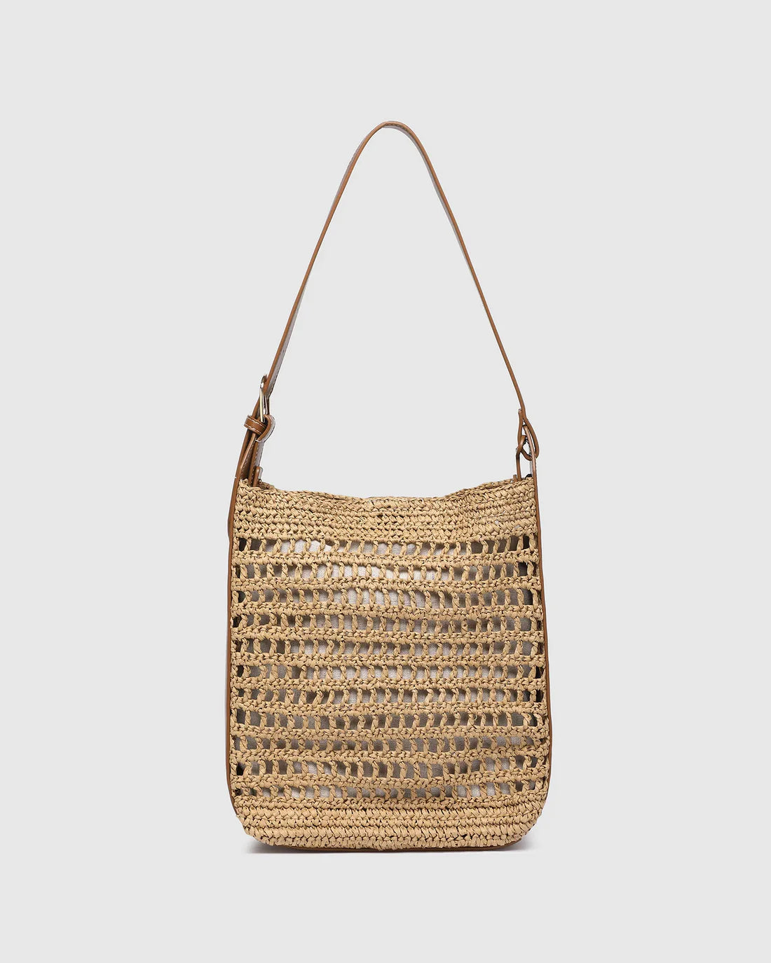 Effortless and versatile, the Louisa Natural Tan Shoulder Bag earns its place among the best summer handbags. Crafted from natural raffia in a relaxed, slouchy silhouette, this open weave bag captures the ease of coastal living. Her softly structured bucket shape offers a spacious interior, ideal for carrying daily essentials, beachside must-haves, or a fresh market find. A smooth tan vegan leather adjustable shoulder strap adds a refined contrast and comfortable carry, designed to sit neatly on the shoulder from morning to evening. A secure zip closure keeps your belongings safe wherever the day takes you. Whether you’re heading to golden hour drinks or a long lunch by the water, Louisa Natural Tan blends practicality with laid-back charm.