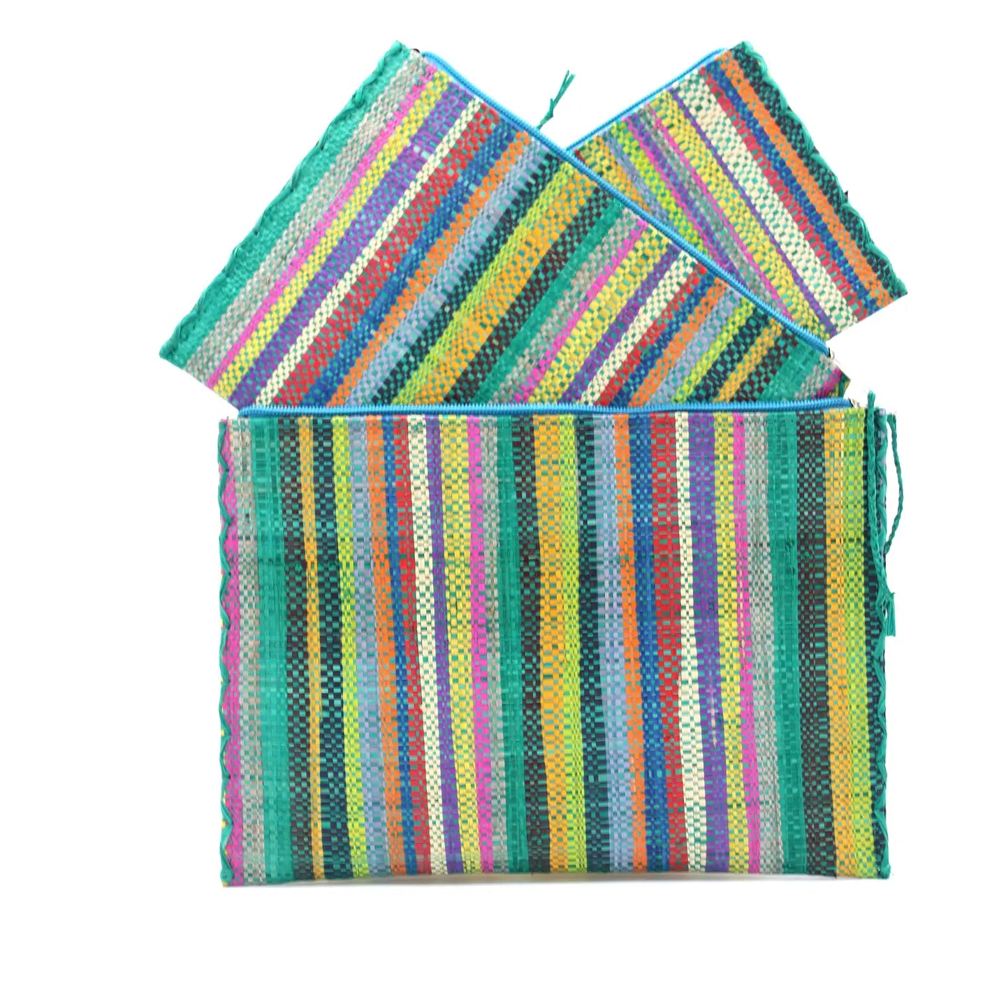 Expertly crafted from sturdy, hand-dyed, and loomed organic materials, this trio of cases serves as a practical solution for organizing and storing your possessions. The cases can also double as stylish clutch purses, offering a nested design and varying sizes for flexible functionality. The inclusion of a striped pattern adds a touch of elegance to your everyday routine.