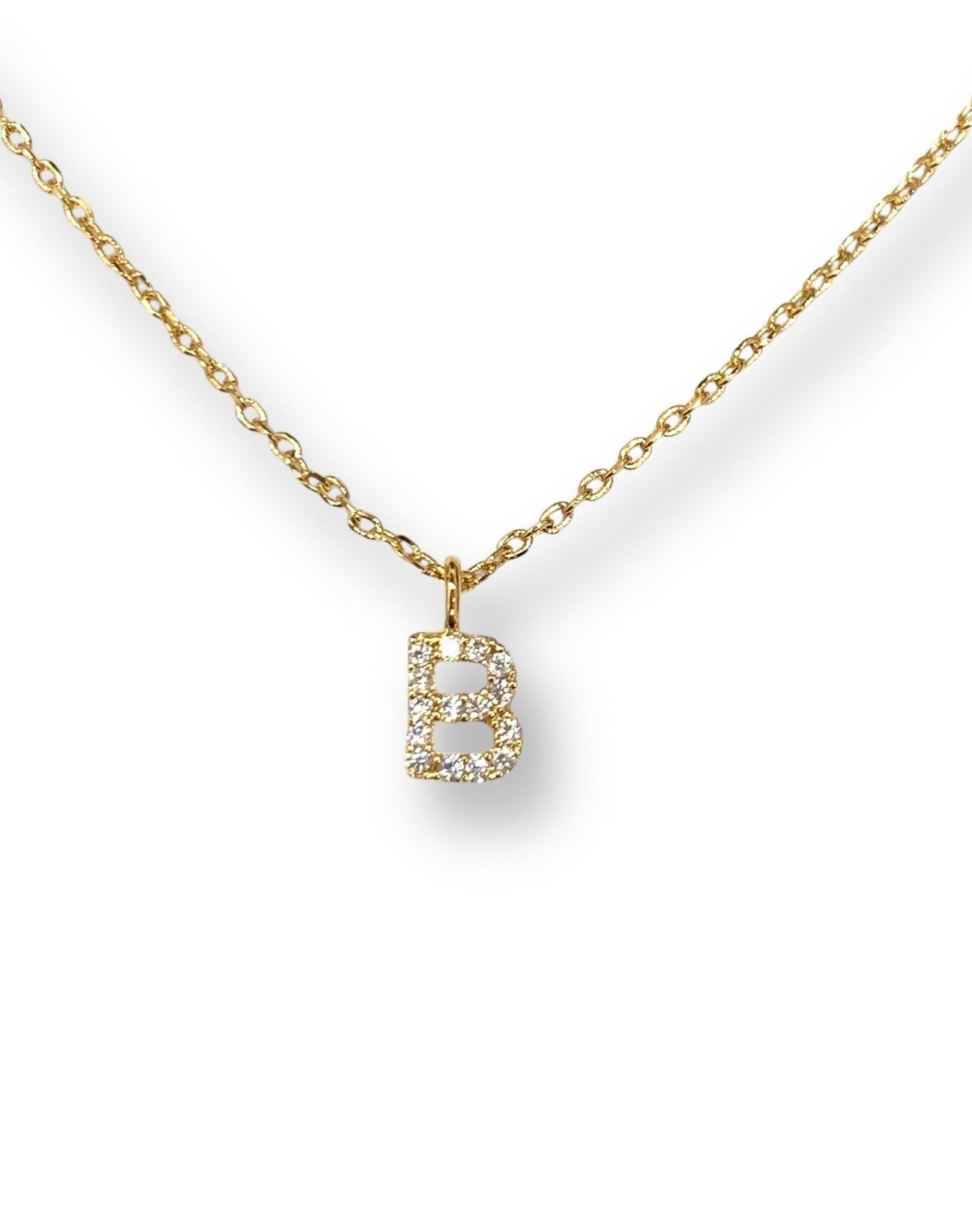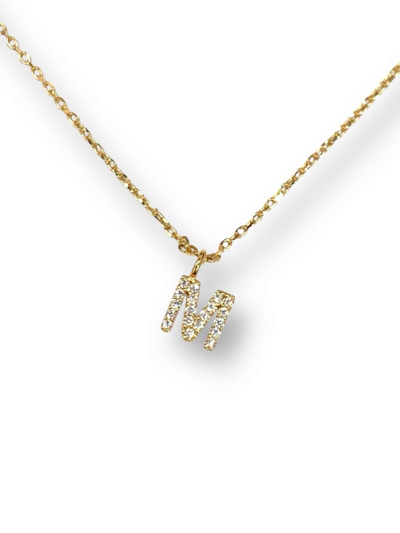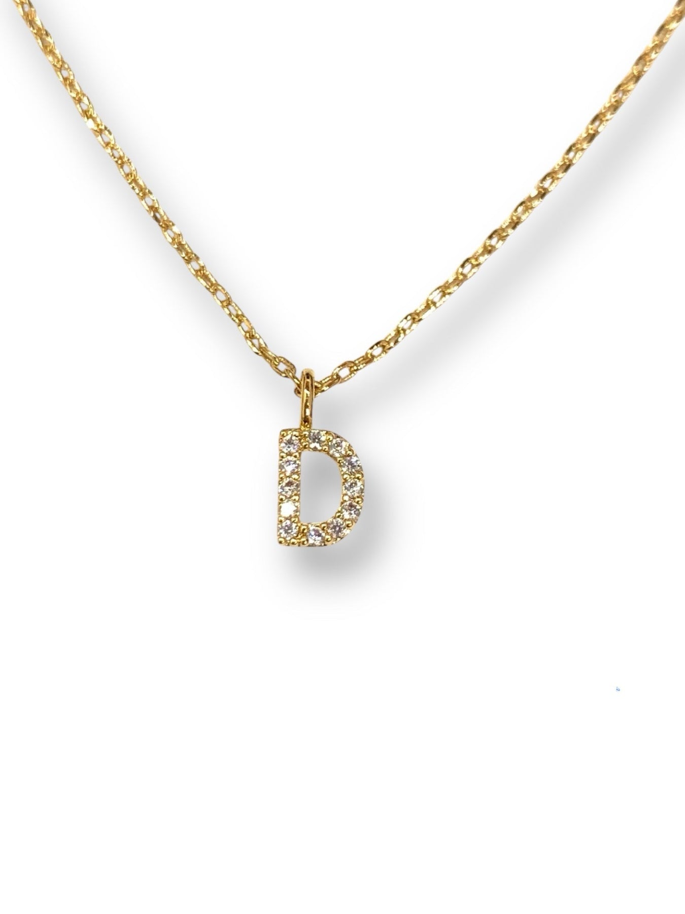 Popular initial necklace in capital letter in high-quality hand-set CZ, Gold finish.