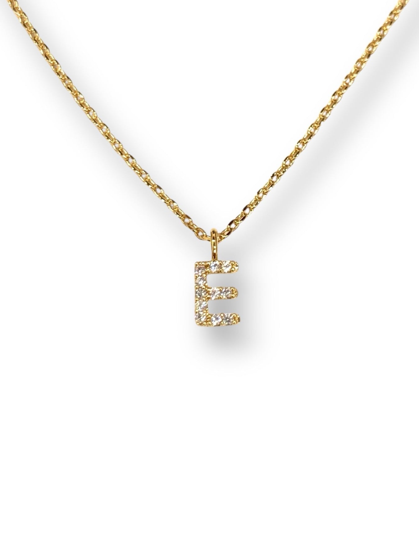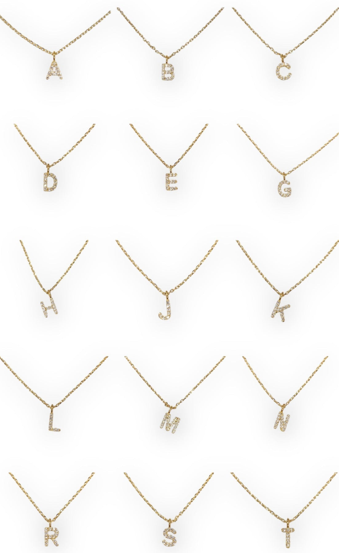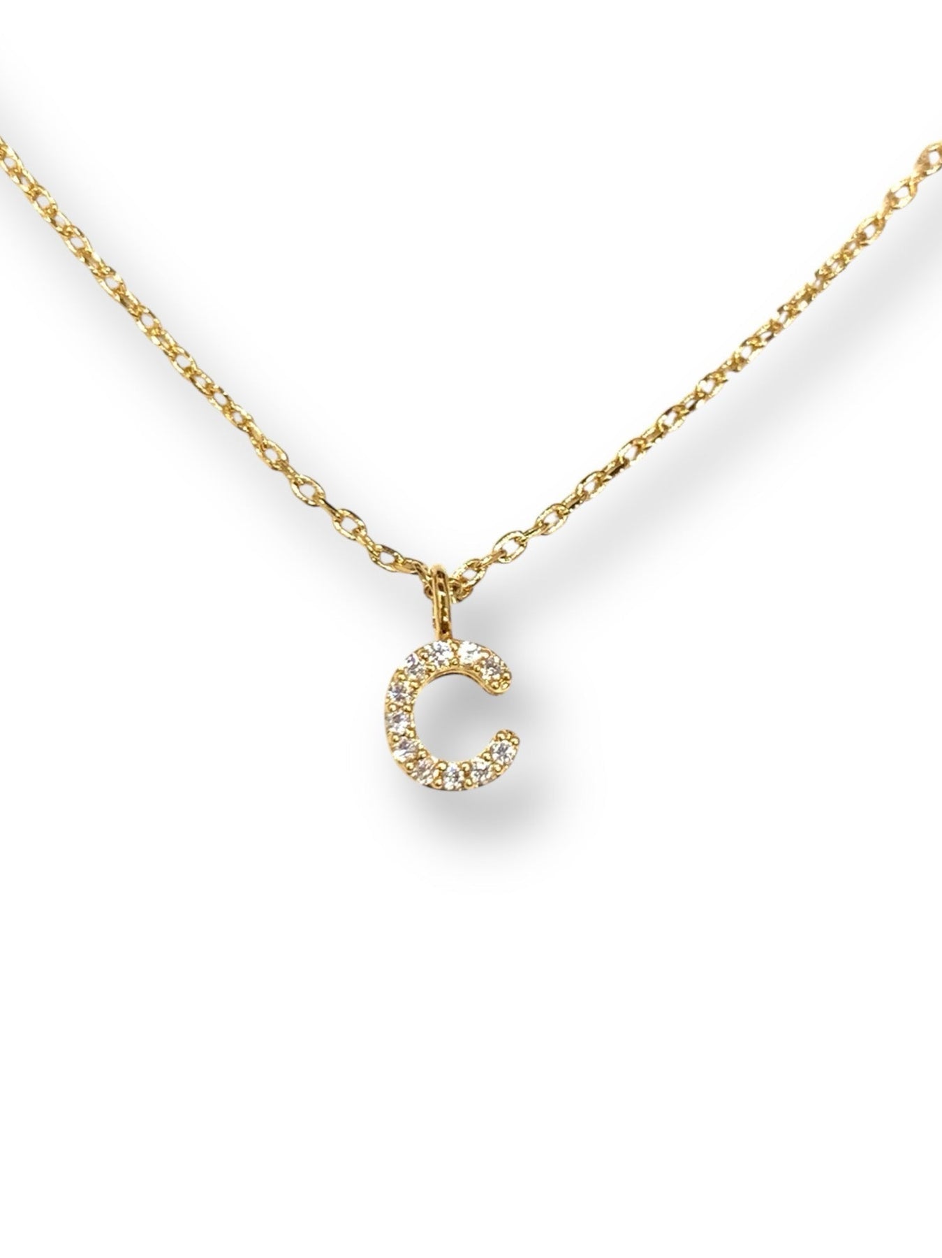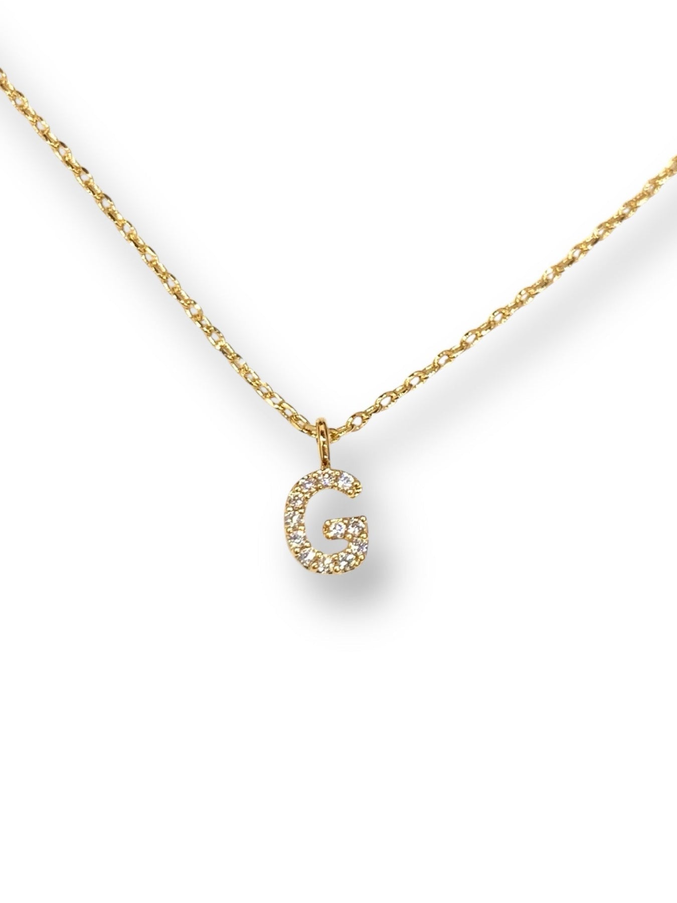 Popular initial necklace in capital letter in high-quality hand-set CZ, Gold finish.