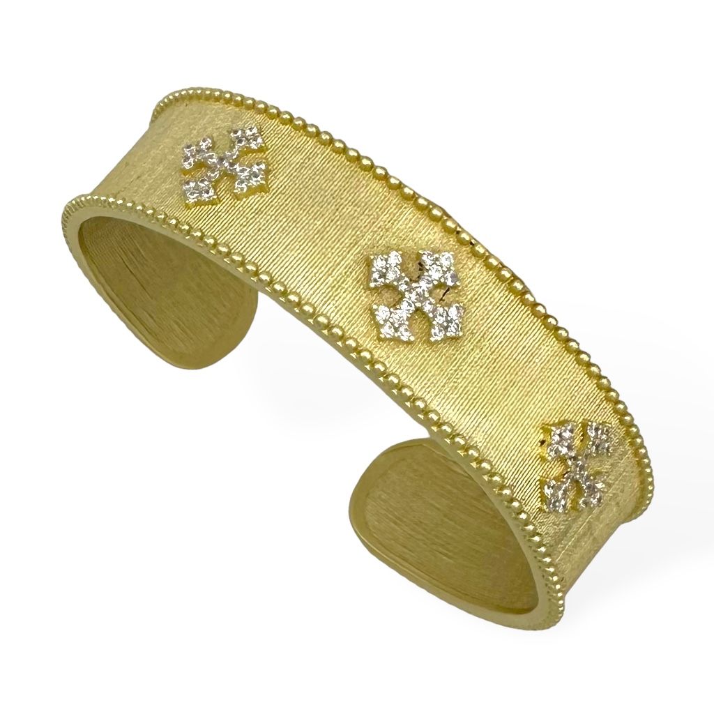 Brush Gold Cuff with Pave Crosses