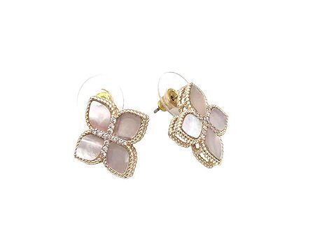 Large Round Gold and Pave Mother of Pearl Flower Earring