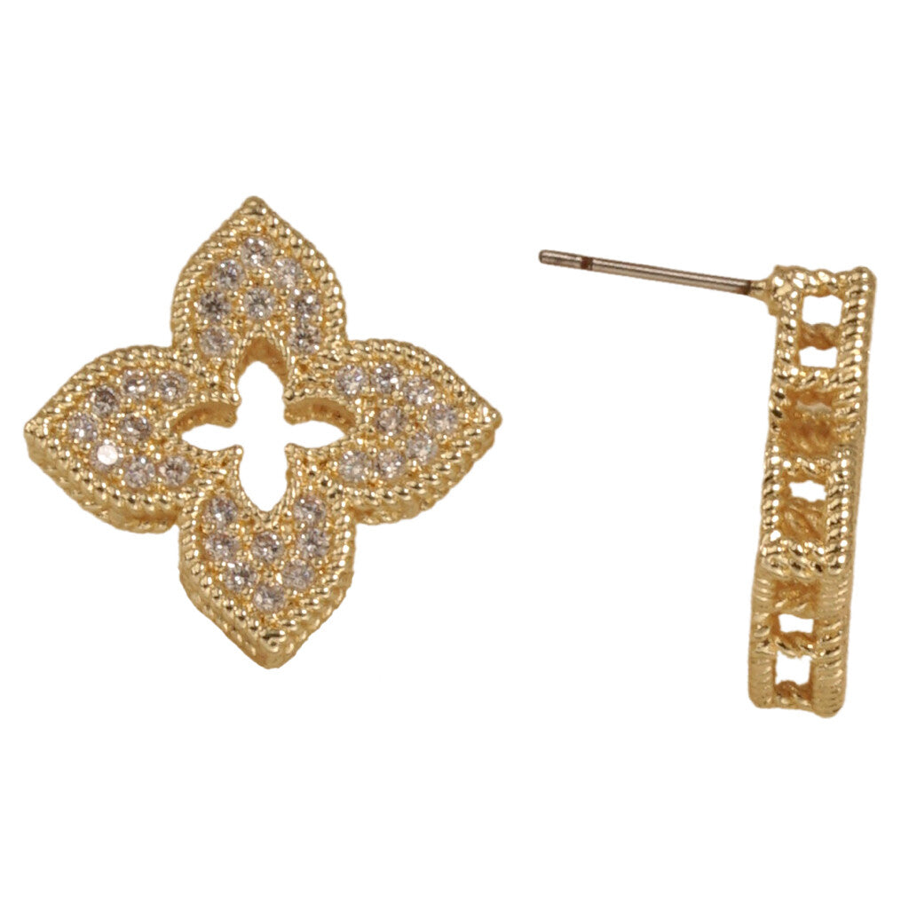 Gold and Pave Clover Stud Earring