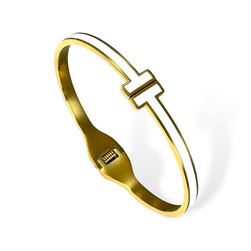 Steel Gold Pave White T Bangle