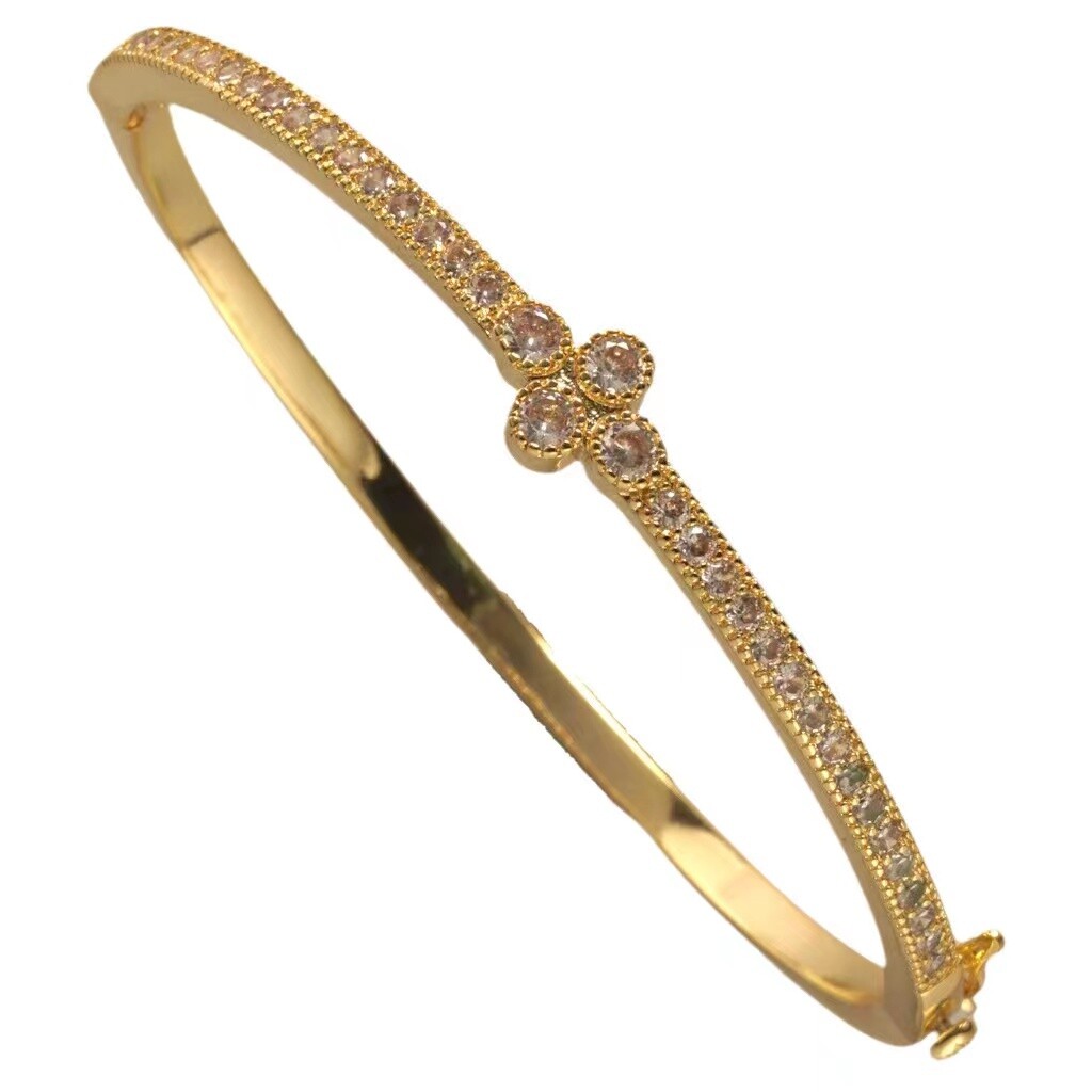 Thin Gold Bangle with CZ Flower