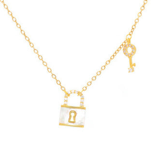 Tiny Gold Necklace with Mother of Pearl Lock
