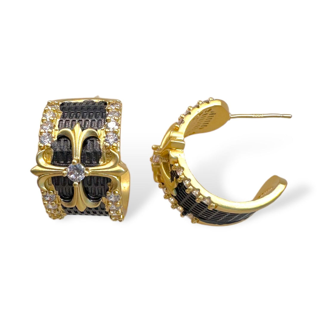 Gold Cable Flower Cross Earring