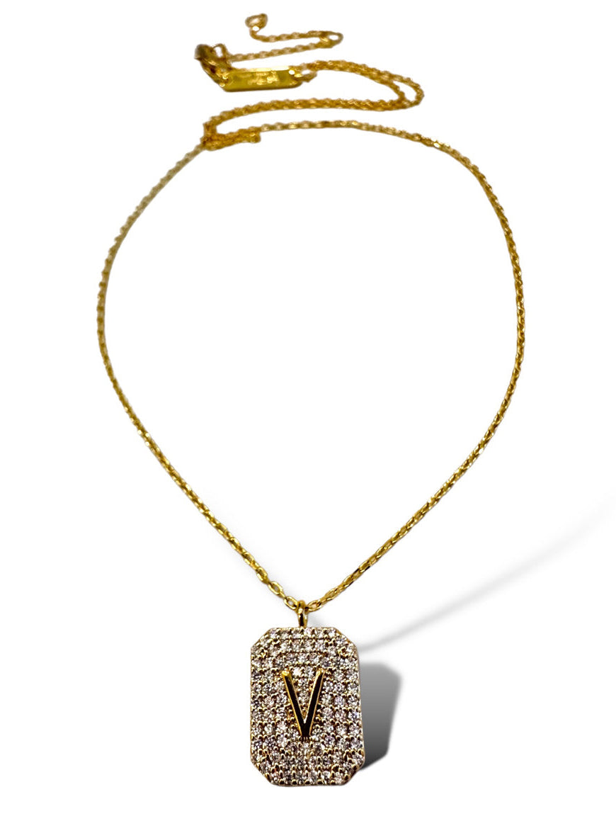 Theia Gold Initial Pave Tag Necklace