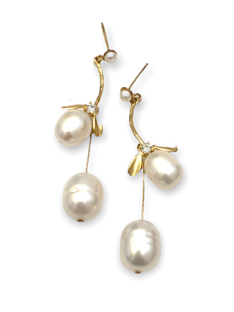 Theia Two Tier Pearl Drop Earrings with Petite Pearl Stud