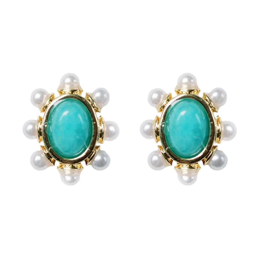 Turquoise and Pearl Oval Stud Earrings