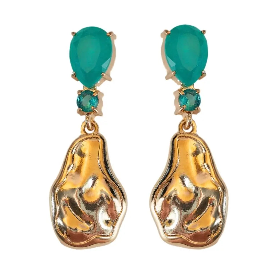 Sculpted Gold Turquoise Drop Statement Earrings