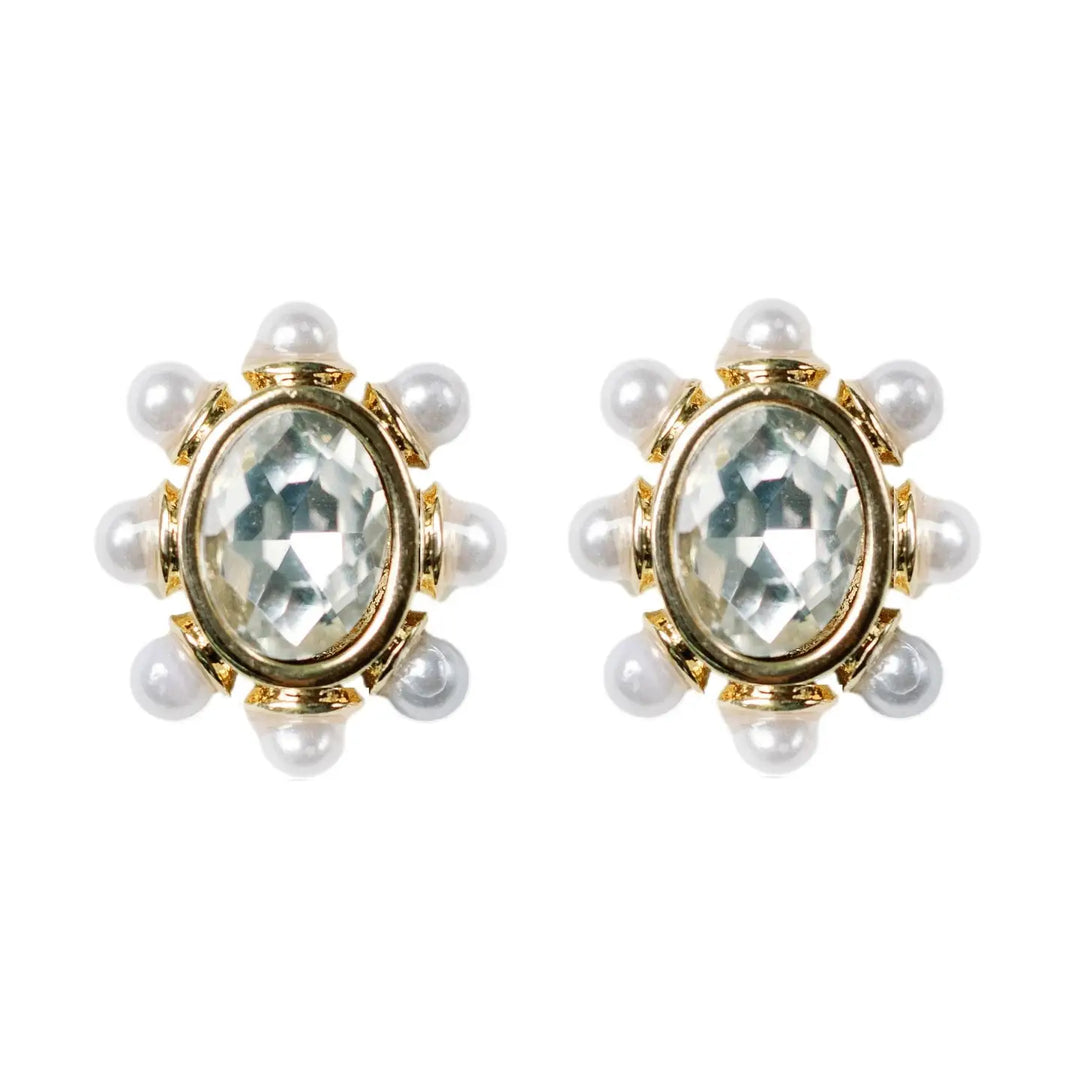 Crystal Pearl Oval Stud Earrings