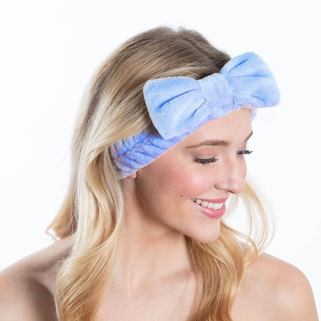 Keep your hair comfortably out of the way with this stylish spa headband.  Topped with a pretty plush bow, you'll be all sass while you get gorgeous! Easily pulls over your head. Adds a pop of posh to your daily routine and pairs perfectly with our plush spa wraps.
