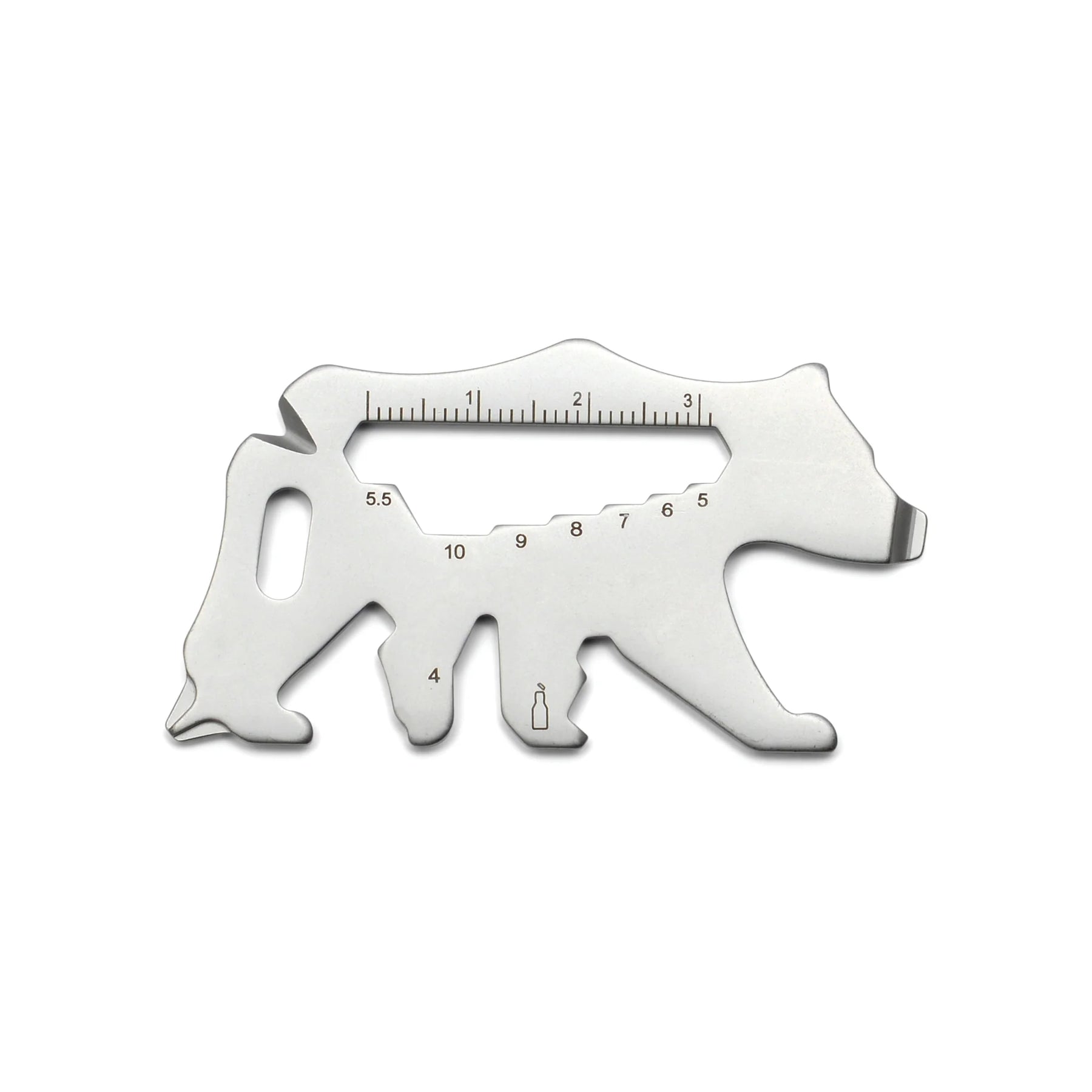 Always be prepared with this bear! Crafted from stainless steel in the shape of a bear, this handy multi-tool is designed to serve fifteen functions in one clever tool. Use it as a screwdriver, ruler, bottle opener, and more, or give it as the perfect gift for any outdoor enthusiast.