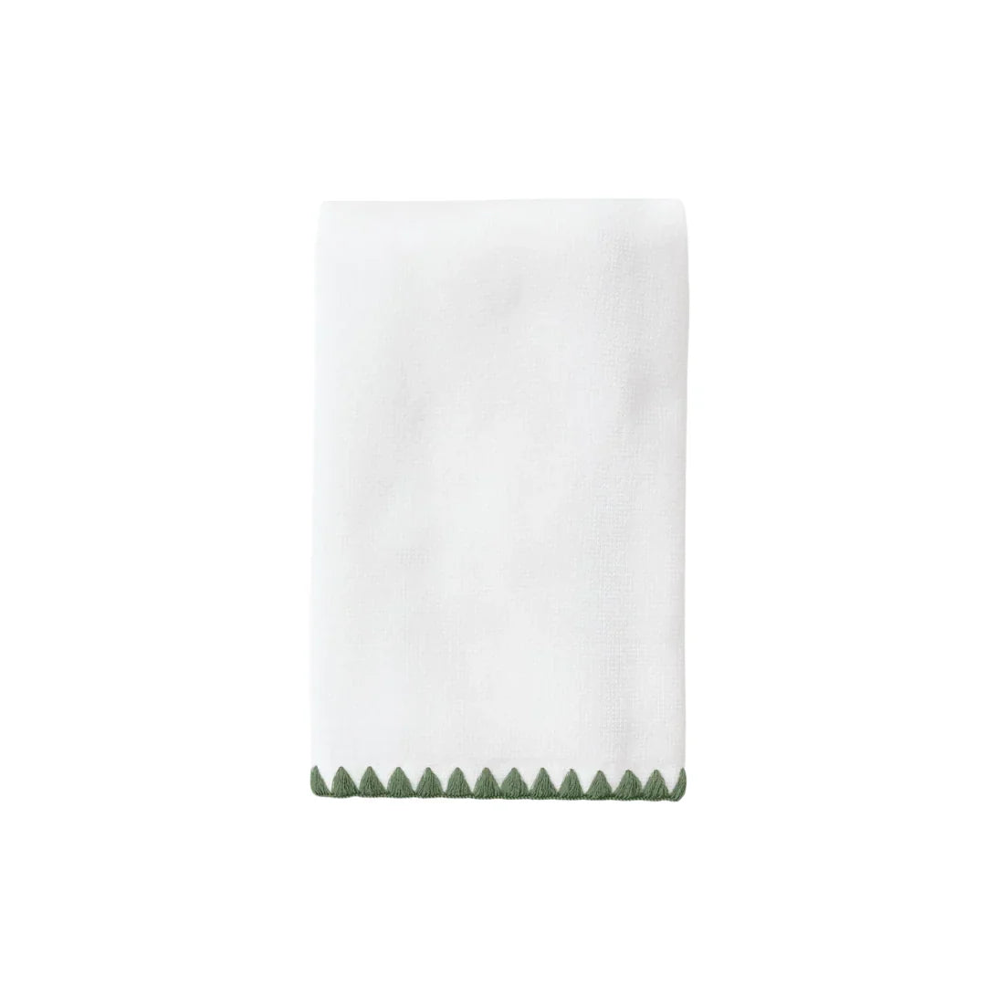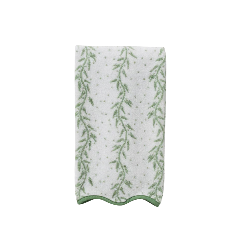 Weezie Fingertip Green on White Stitched Edge Powder Bath Towel