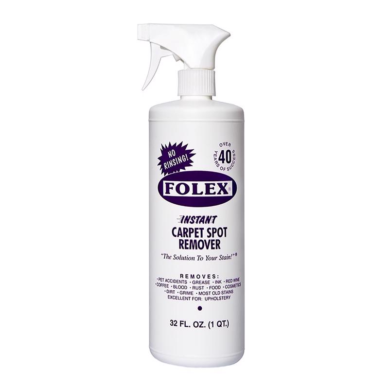 Folex Instant Carpet Spot Remover quickly removes the toughest spots and stains from carpets, rugs and upholstery without rinsing, vacuuming or waiting to see results. Amazing surfactant action powers out both new and old stains. Our water based non-ionic formula does not leave a sticky residue so stains will not reappear. Safe for use on any color fast carpet, fabric or material that can be dampened with water.