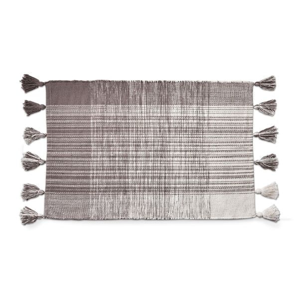 Gray Plaid Tassel Rug