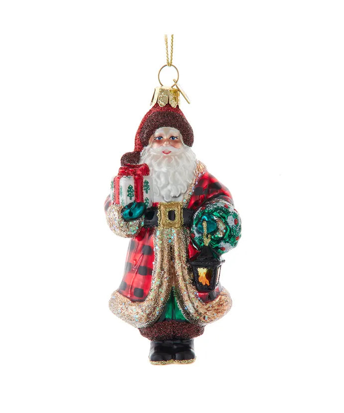 Kurt Adler Noble Gems Glass Santa With Lantern & Presents Ornament