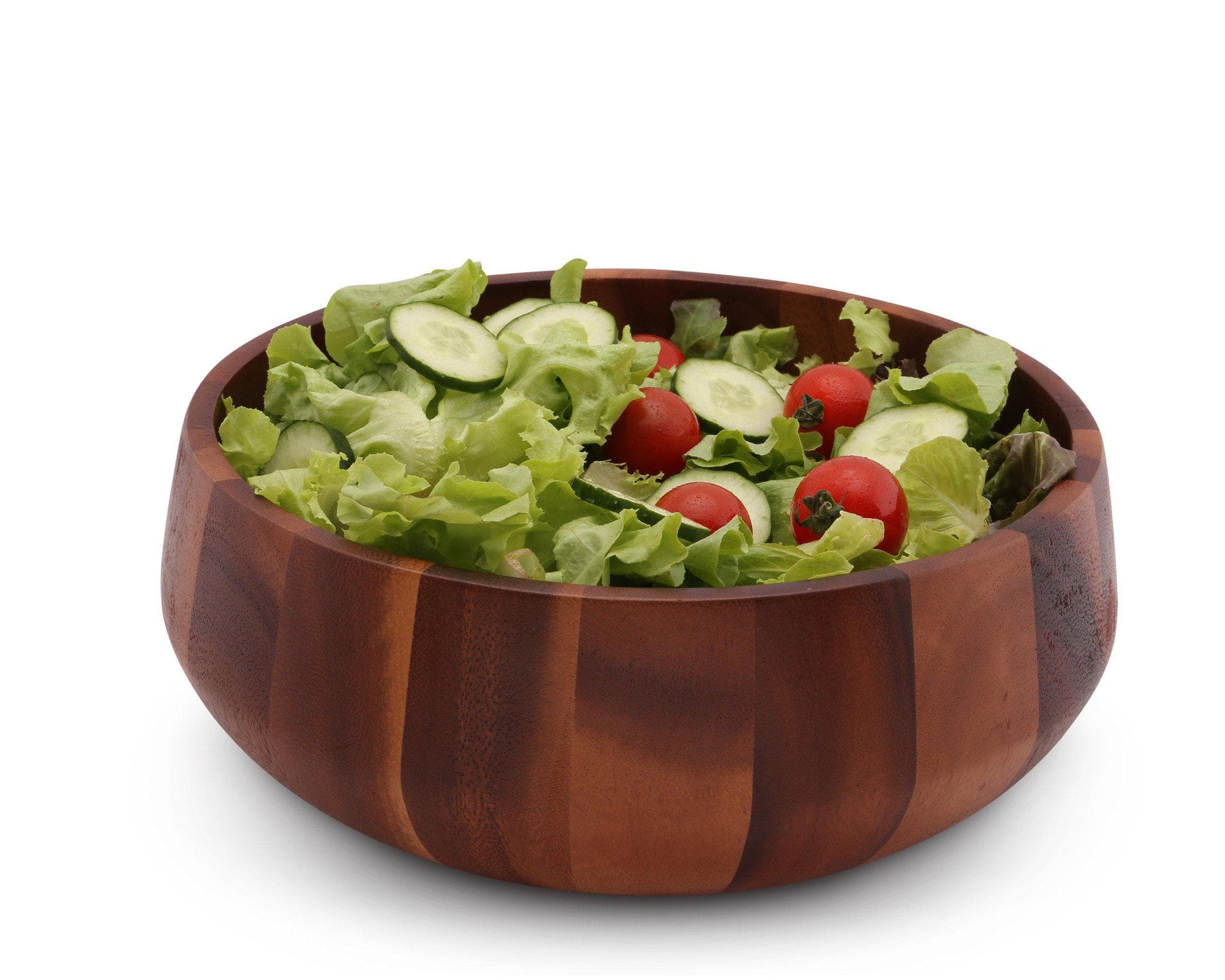 Arthur Court's acacia salad bowls are versatile, serving any type of salad, composed dish or snacks your family loves. These beautiful, chatoyant acacia bowls are kid friendly with no sharp corners, no splinters and completely food safe. They are perfect on the counter for after school fruit and snacks. Trust the genuine Arthur Court brand to use responsible foresting techniques and environmentally friendly acacia wood. Do not use in the microwave or clean in the dishwasher.