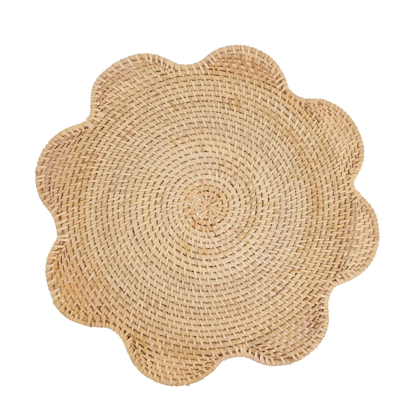 Bring organic texture and sculptural detail to your table with these Scalloped Rattan Round Placemats. The handwoven rattan construction and softly curved scalloped edge create a warm, elevated foundation that layers beautifully with dinnerware, chargers, and seasonal décor for everyday meals and special gatherings alike.