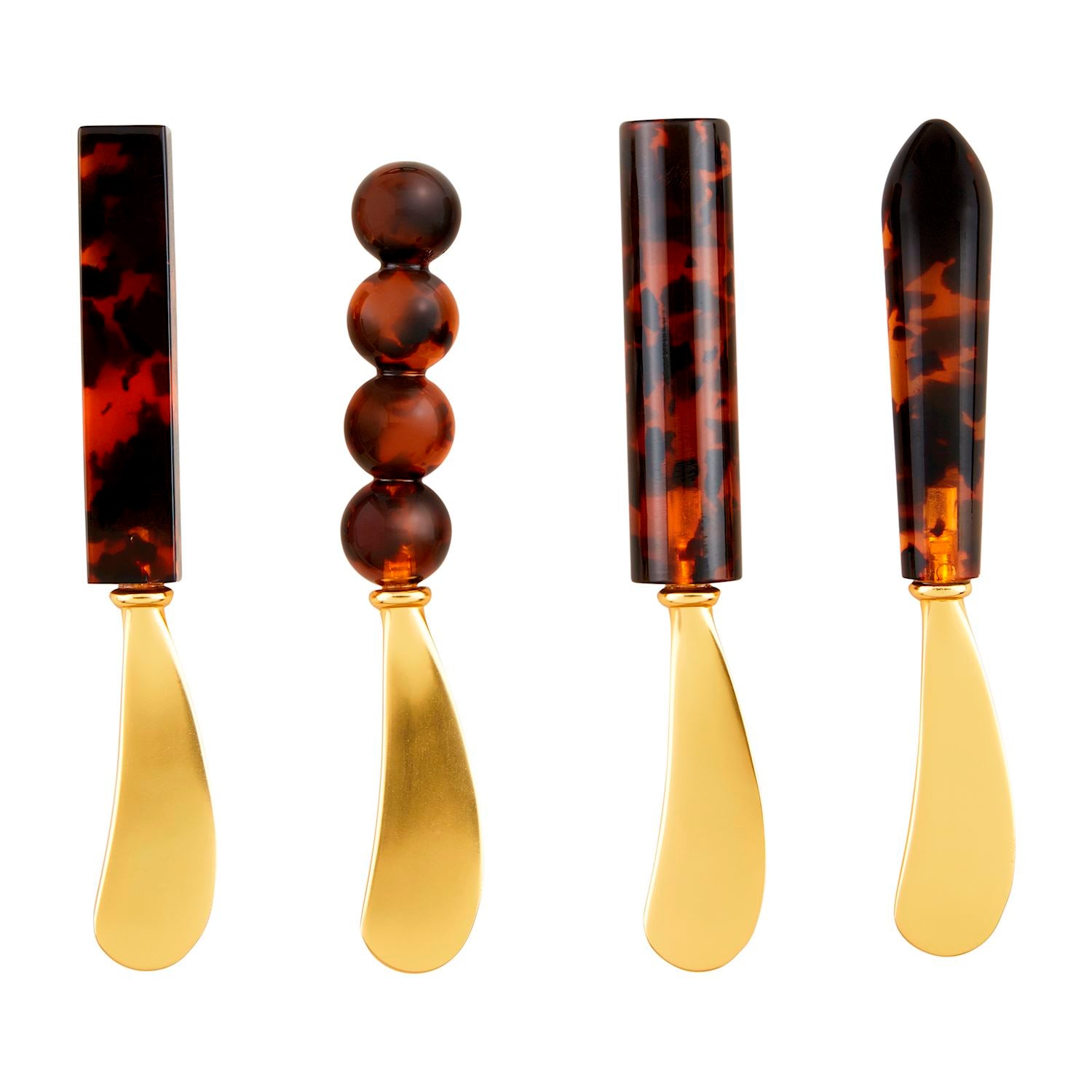Brass finished stainless steel spreader with tortoise acrylic handle.