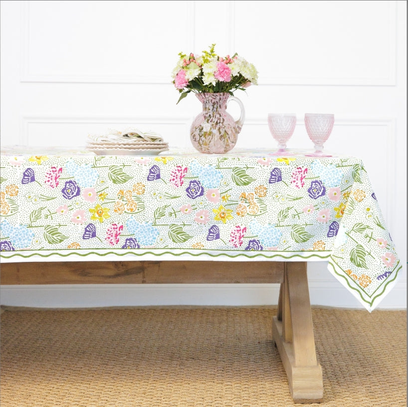 Pomegranate Caroline Green Floral Tablecloth