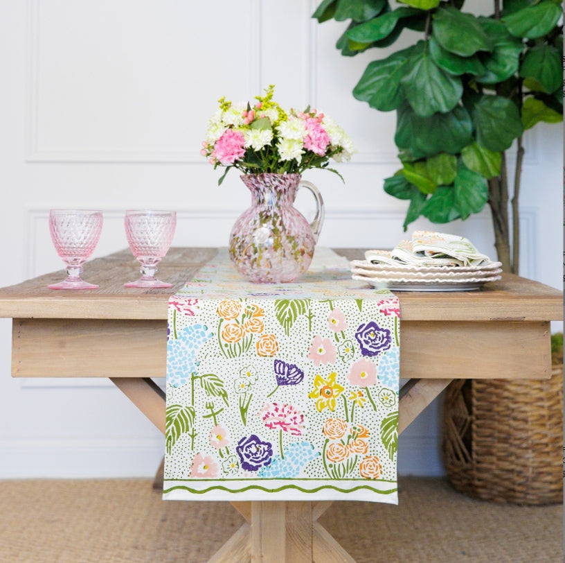 Pomegranate Caroline Green Floral Table Runner