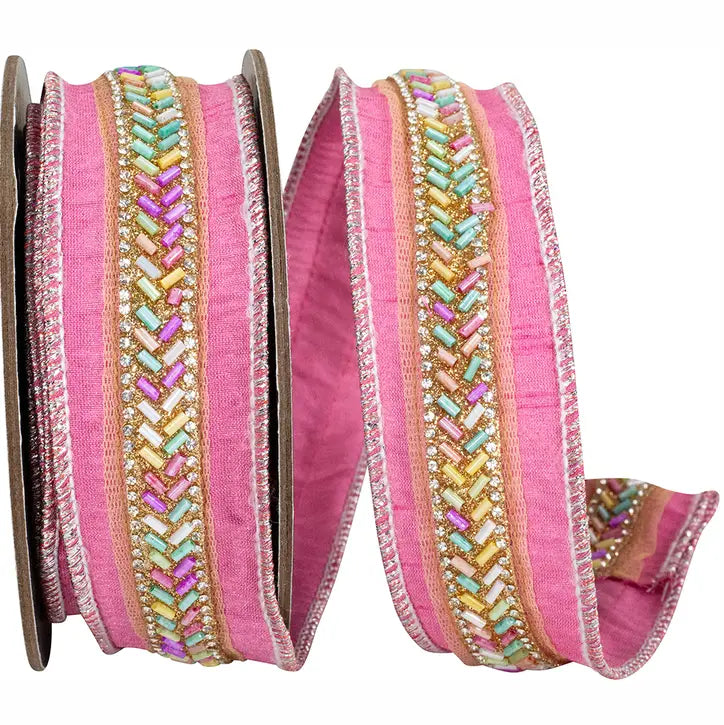 Beaded Dupioni Glitter Wired Edge Ribbon