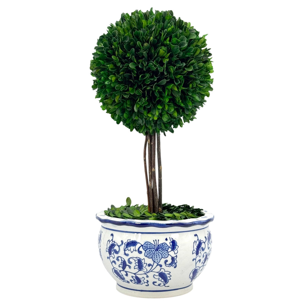 Boxwood Ball Topiary Tree in Round Blue & White Ceramic Pot